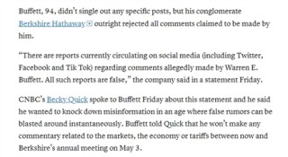 当地时间4日,美国总统特朗普通过社交媒体“真实社交”转载了一段原本发布在TikTok、后又被搬运至社交媒体X的视频。该视频以“幻灯片+配音解说”的形式,称美国著名投资人、“股神”沃伦·巴菲特支持特朗普政府的关税计划。...