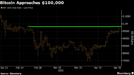 随着金融市场风险偏好再度升温,比特币再次进逼10万美元大关。
