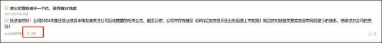 有投资者曾在互动易询问公司是否存在ST风险,公司却给予否认。