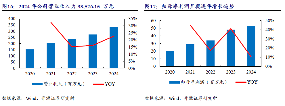 一方面,随着收入规模的增长,公司的销售费用与管理费用率也在逐渐下降。另一方面,2022-2024年,公司研发费用金额分别为 1,255.36 万元、1,399.67 万元和 1,944.20 万元,公司研发费用率分别为 5.33%、5.12%和5.80%,研发费用率稳中有增。