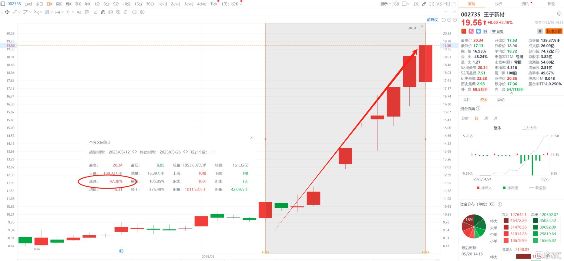 不过,此前创下10天6板的王子新材今日则涨势放缓,盘中一度大跌后翻红。