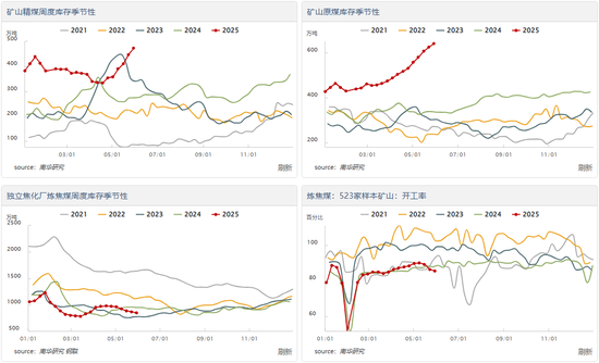 【热点解读】钢厂于5月中旬开启新一轮提降周期,焦化厂对原料煤的补库意愿不强,导致矿山环节焦煤库存攀升。因现货销售不畅出现顶库,部分矿山有减产动作,但小范围减产不足以缓解当前的过剩矛盾,叠加关税战带来的不确定性,焦煤盘面加速下跌,现货降价相对滞后,焦煤基差走强,过高的基差也意味着此轮反弹弹性较大。关于市场热议的蒙古煤炭出口加征资源税的消息,蒙古经济对煤炭出口依赖度高,中国市场对高价蒙煤接受度低,加征资源税或导致蒙煤出口规模大幅收缩,对蒙古经济增长有弊无利,因此该消息真实性有待证实。6月为安全生产月,安全监察有收紧的可能,但当前样本矿山开工率季节性偏低,且主产区年初确定“以量换价”的生产目标,保经济稳生产的大方向不会突然改变,因此发生大面积安监的可能性不大。
